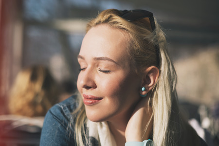 close up Portrait of pretty woman curly blonde hair