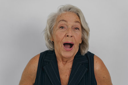A Surprised Senior Woman Joyfully Expressing Her Delight and Happiness in a Candid Moment