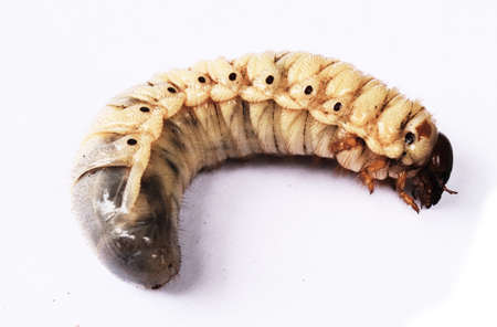Larva of a may-bug on a white background