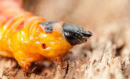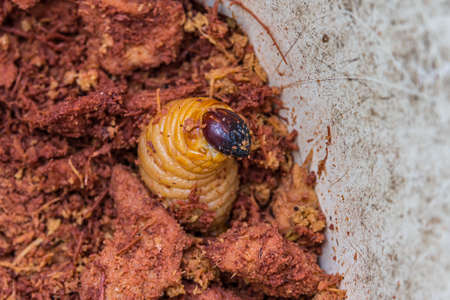 Rhinoceros beetle larva front in the ground