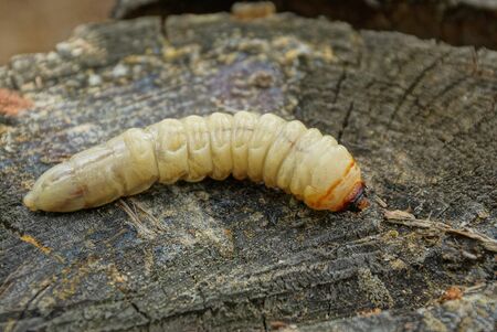 rhinoceros beetle, Rhino beetle larvae on an old wood stump. Large larvae of a rhinoceros beetle.