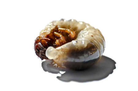 Larva of a may beetle (Melolontha) isolated on a white background. High resolution photo. Full depth of field.
