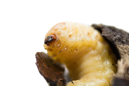 Shallow DOF Beetle Grub in white