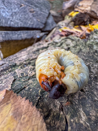 Beetle Larva: A Grub Emerging from Its Woodland Home