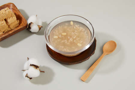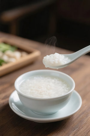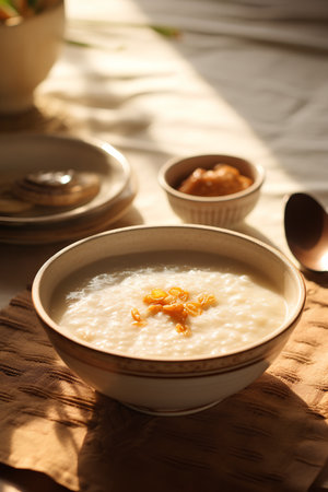 Traditional Asian porridge. Bowl food soup with natural elements. Generate Ai