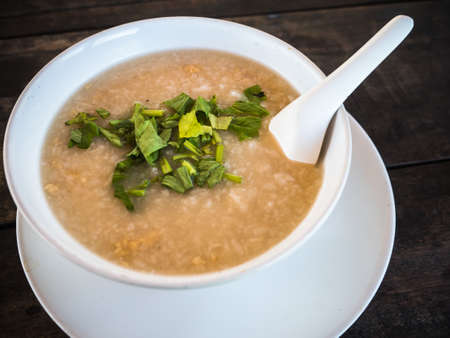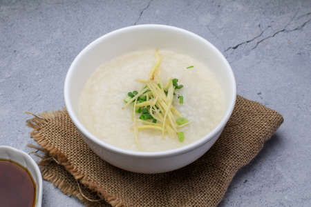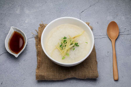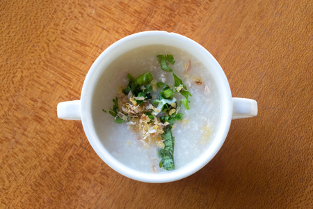 Rice porridge or Congee with fresh ginger and coriander, is a favorite breakfast for south east asian people.