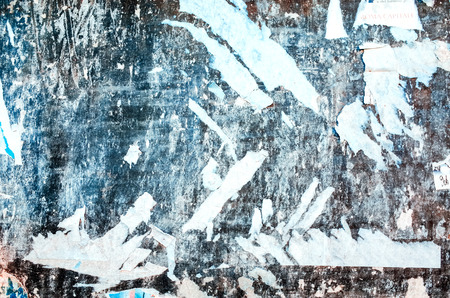 Grunge texture of torn paper layers and worn posters on old wall with rough surface. Abstract background of weathered urban wall,