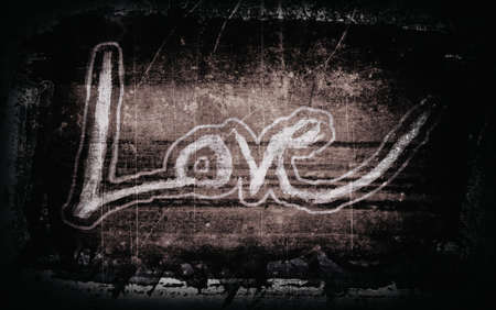 love hand-written, the word love written by hand, artistic word love, outlined lettering sketched in marker and pastel, pale lettering on painted and scratched grunge texture with dark vignette, sepia tints.