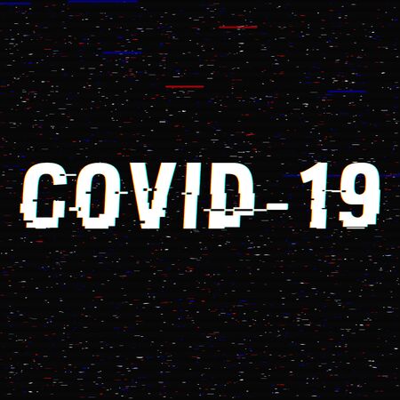 Covid-19 vector glitch text. Stop Novel virus outbreak Coronavirus 2019 symptoms . Travel or vacantion warning with anaglyph 3D effect. Pandemic and epidemic flyer, poster layout.