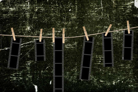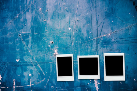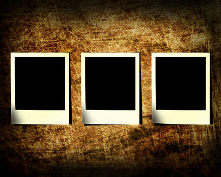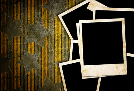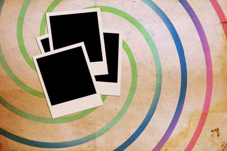 Stack old photos on table. Mock-up blank paper. Postcard rumpled and dirty vintage. Retro card