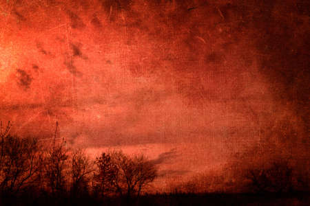 vintage tone shot image of mountain and sunset sky in background with scratch dirty texture