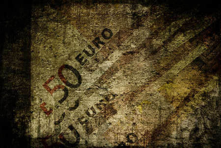 Closeup of Fifty Euro banknotes overlaid with grunge pattern