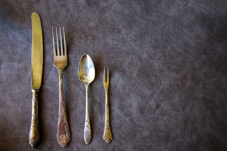 old used cutlery on dark wooden table
