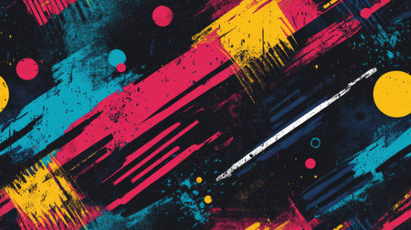 This vibrant urban abstract pattern with bold colors and unique textures is perfect for fabric applications, gift wrapping, and modern design projects that inspire creativity and artistic expression