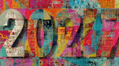 This vibrant and colorful abstract artwork features the year 2027 in a bold design, perfect for celebrating New Year events and festivities.