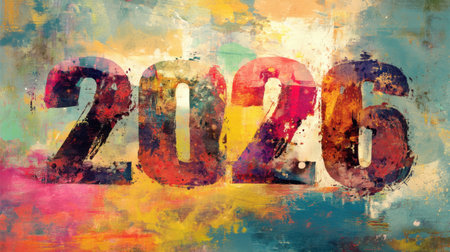 This vibrant and colorful abstract artwork features the bold representation of the year 2026, set against a lively background. Perfect for celebrating future events!