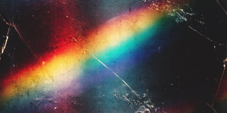 Vector seamless pattern, Crystal rainbow light leaks photo overlay background with lens flare effect, scratches dust dirty film grain texture with heavy noise, grunge texture, distressed damaged film.