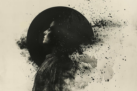 Explore the dramatic silhouette of a person surrounded by an abstract orange dust explosion, conveying mystery and creativity in this striking visual.