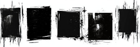 Black rough edge rectangles showcase grunge square frames, perfect for creative design projects and artistic collage applications in various media.