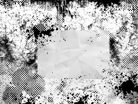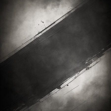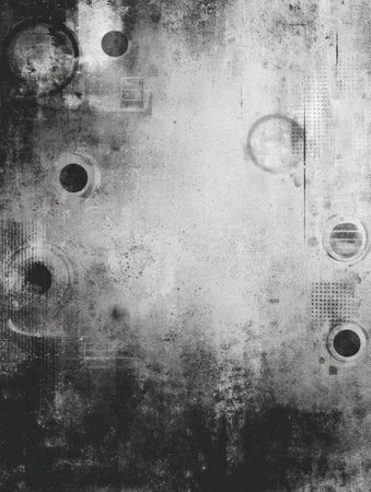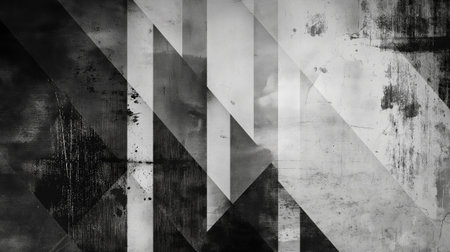 Grungy black and white backdrop with striped geometric pattern and textured overlay