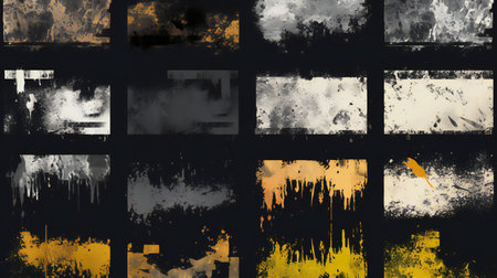 This design has a grunge background and monochrome sticker icons, adding visual appeal for artistic projects.