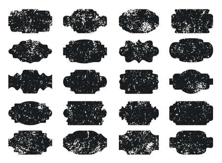 Set of black grunge labels, shapes, create with distressed effect. Vintage stamps. Vector illustration