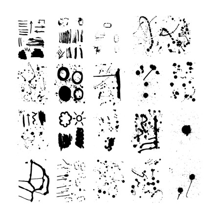 A collection of grunge paint and spray marks. Texture vector illustration.