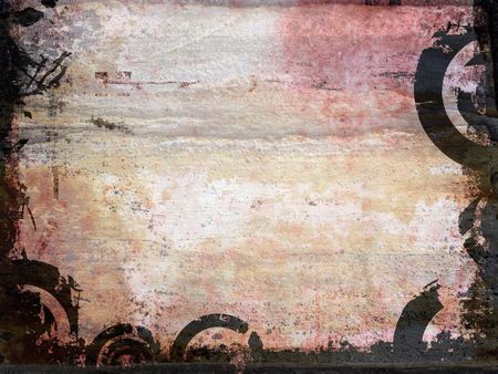 A grunge, abstract composition on a faux paper or parchment type of surface.