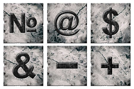Set, different signs. Alphabet on stone blocks. isolated on white background. education design element