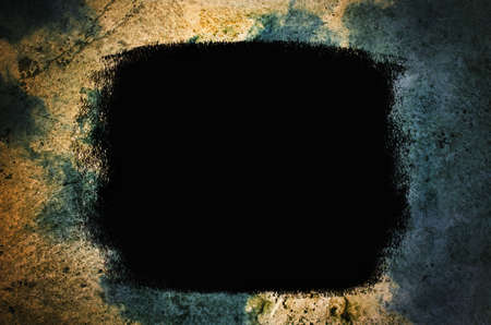 Scary horror haunted black picture frame on grunge dirty abandoned house wall.