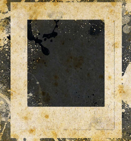an old paper background with a square frame and paint splatters