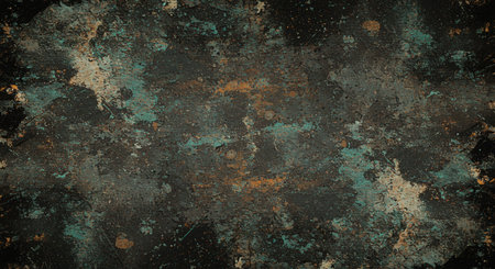 A distressed grunge background peeling paint in teal, blue, green, and white, with visible cracks and scratches for a weathered, vintage effect.