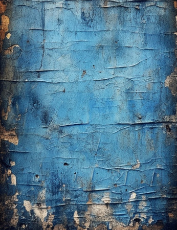 Generative AI : Old metallic sheet with distressed blue chipping paint