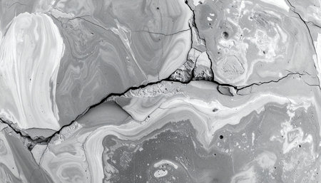 Abstract close-up of cracked concrete revealing swirling gray and white patterns and a rough, distressed texture.