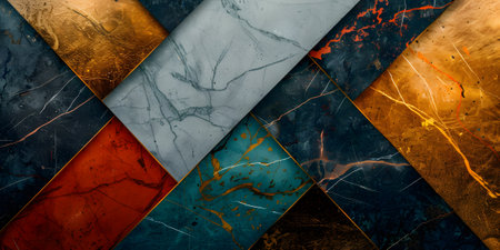 A luxury background showing samples of premium finishing materials, including marble, gold, and glittering stones.