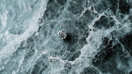 This striking image features a sparkling diamond resting on a luxurious marble surface. The intricate patterns and textures of the stone enhance the beauty and elegance of the gem.