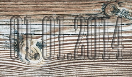 01.01.2014 transparent embossed on wooden background