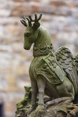 Scottish Deer sculpture as an element of the fountain at the inner courtyard of Linlithgow Palace, Scotland.