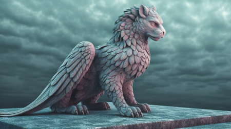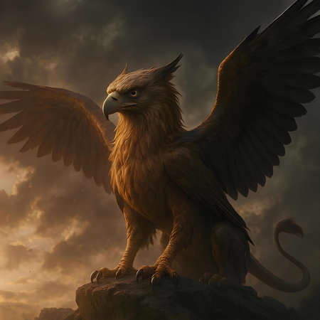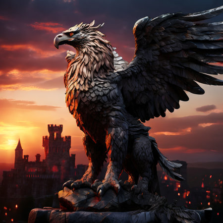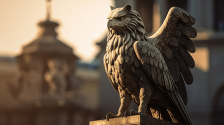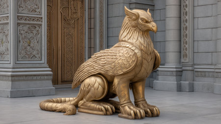 Guardian gryphon statue perched intricate feathers vigilant gaze