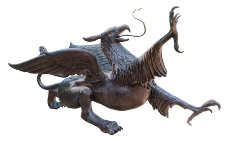Statue of a griffin, isolated with clipping path on white background