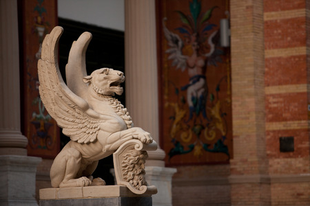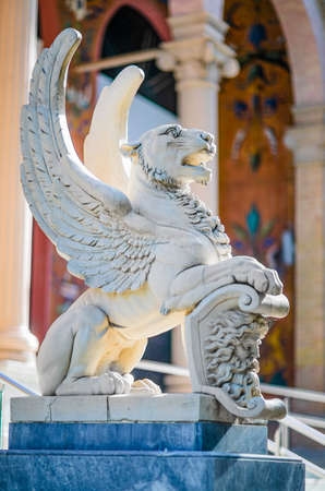 Sculpture of a winged lion in the city Park of Madrid