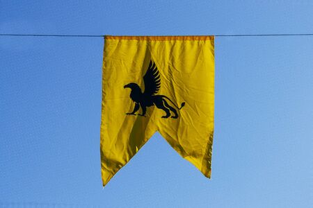 yellow chimera banner with blue sky in the background. Medieval concept