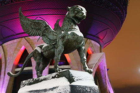 The sculpture of Ak Bars at the building of the Kazan wedding palace