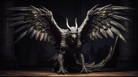 Statue of mythological beast animal fusion gaze piercing wings open