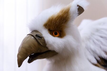 in the white sky a bronze statue of eagle head bokeh background