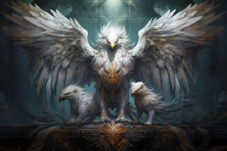 Loyal griffins, majestic creatures with the body of a lion and the wings of an eagle - Generative AI