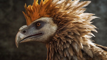 this is a portrait photograph of a mythical creature known as a griffin hybrid. it features the head and upper body of an eagle combined with the lower body and tail of a lion. ai generated
