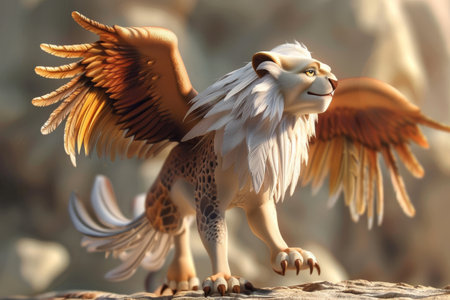 3d cartoon Illustrate a mythical griffin with a lion's body and eagle's wings --ar 3:2 Job ID: 4fc49cf0-efa0-41e3-ae64-063da118faad
