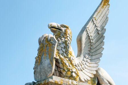 Moscow, Russia - May 26, 2019: Griffins in the Park manor Marfino