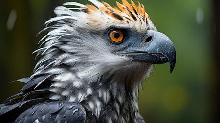 A closeup shot of a harpy eagle on blurred background